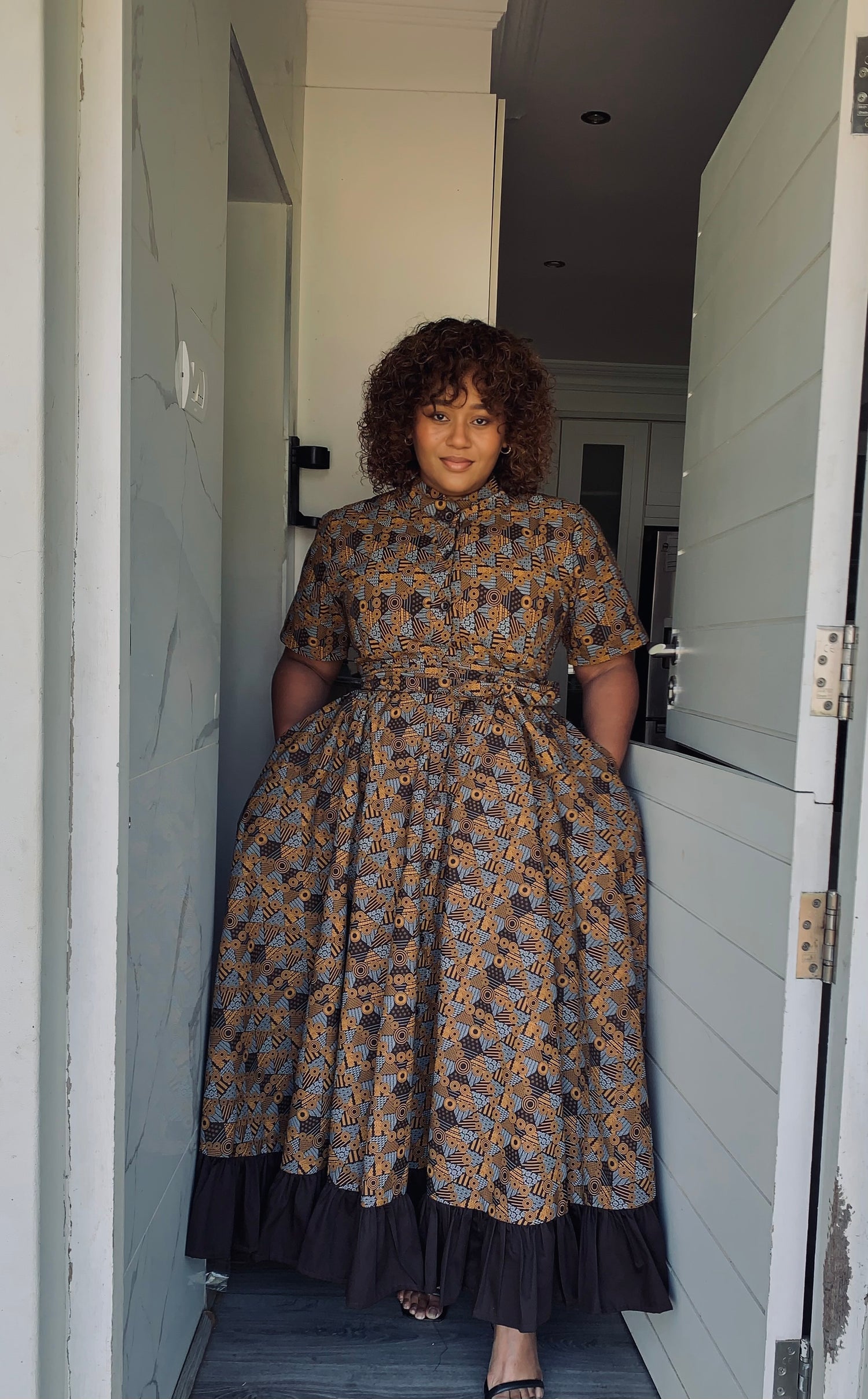 Includes fabric belt and headwrap